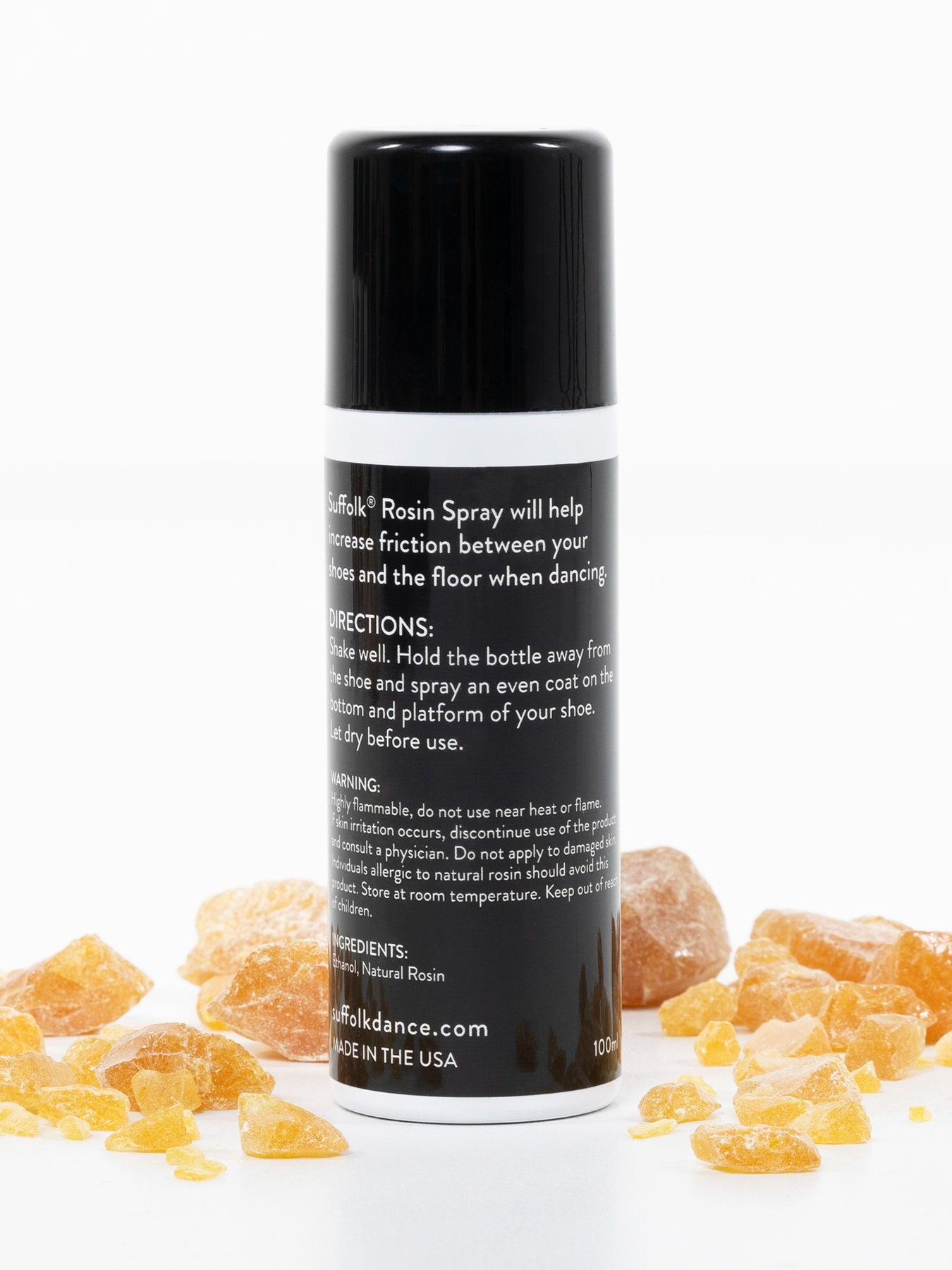 Suffolk Rosin Spray will help increase the friction between your shoes and the floor when dancing. Made in the USA from natural rosin.