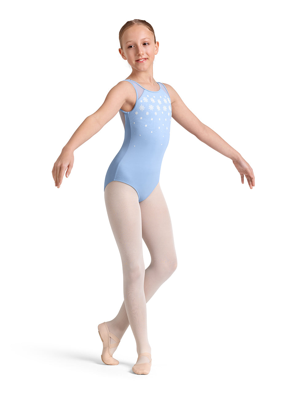 Our Girls Mirella Kaleidoscope Tank Leotard features a delicately scooped soft mesh back, tank straps with printed kaleidoscope detail. Step into a world of color and creativity with Kaleidoscope, a dancewear collection made for young dancers who shine from the inside out. With soft pastel tones and playful geometric prints, each piece is thoughtfully designed to celebrate movement and imagination.