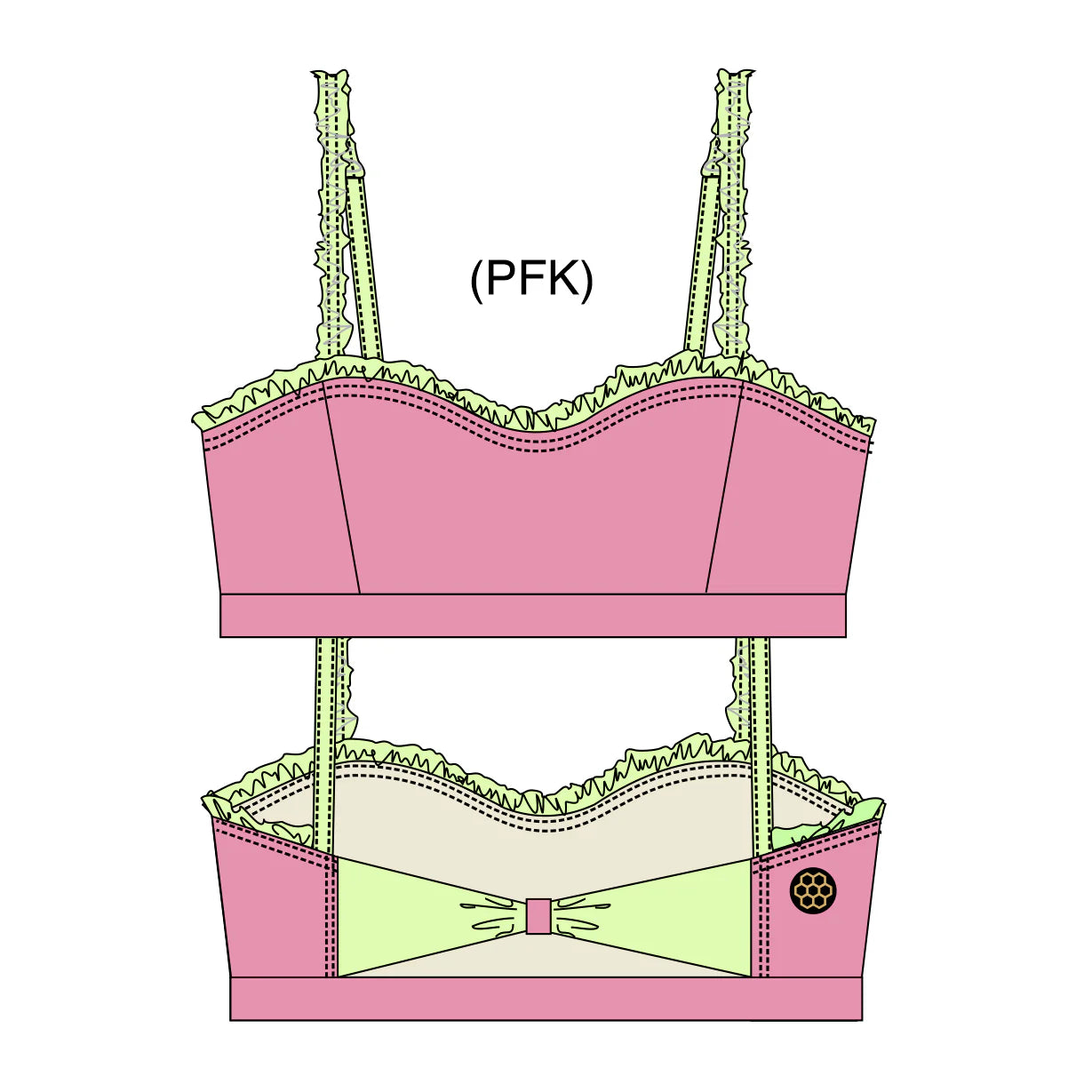 Lily Top: This top is everything! Our super soft fabric is shaped into a curved bodice with contrast contoured mini ruffle across the top edge, rushed ruffle adjustable straps and back contrast bow finish. Our circle silicone logo finished off at the back right side.