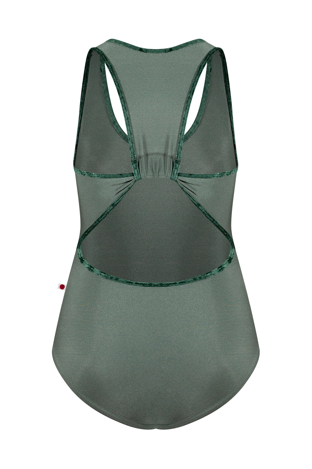 With a sporty, gathered racerback and flattering scoop neck, the ALEX leotard has become a favored staple among dancers.